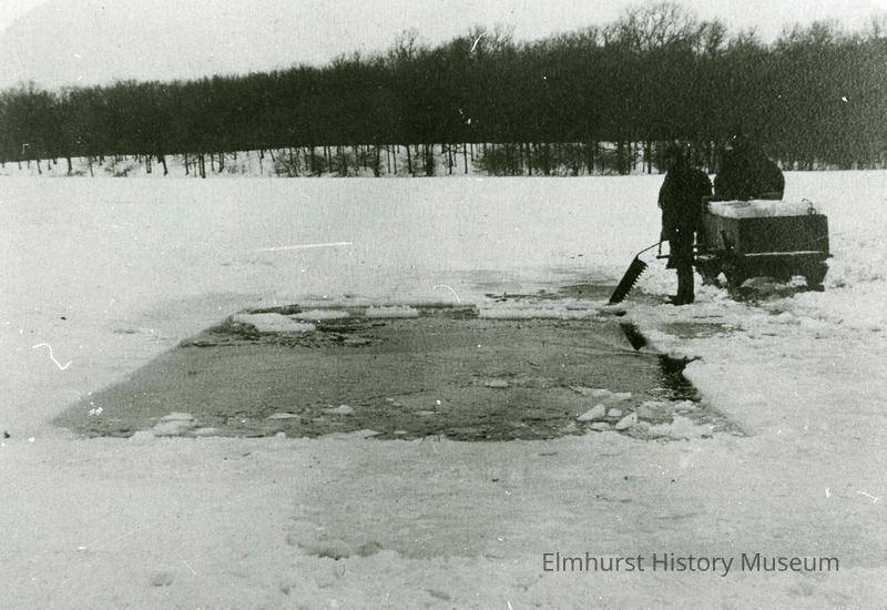 Pencil notation on the back reads "Sawing ice on Salt Creek c.1910."