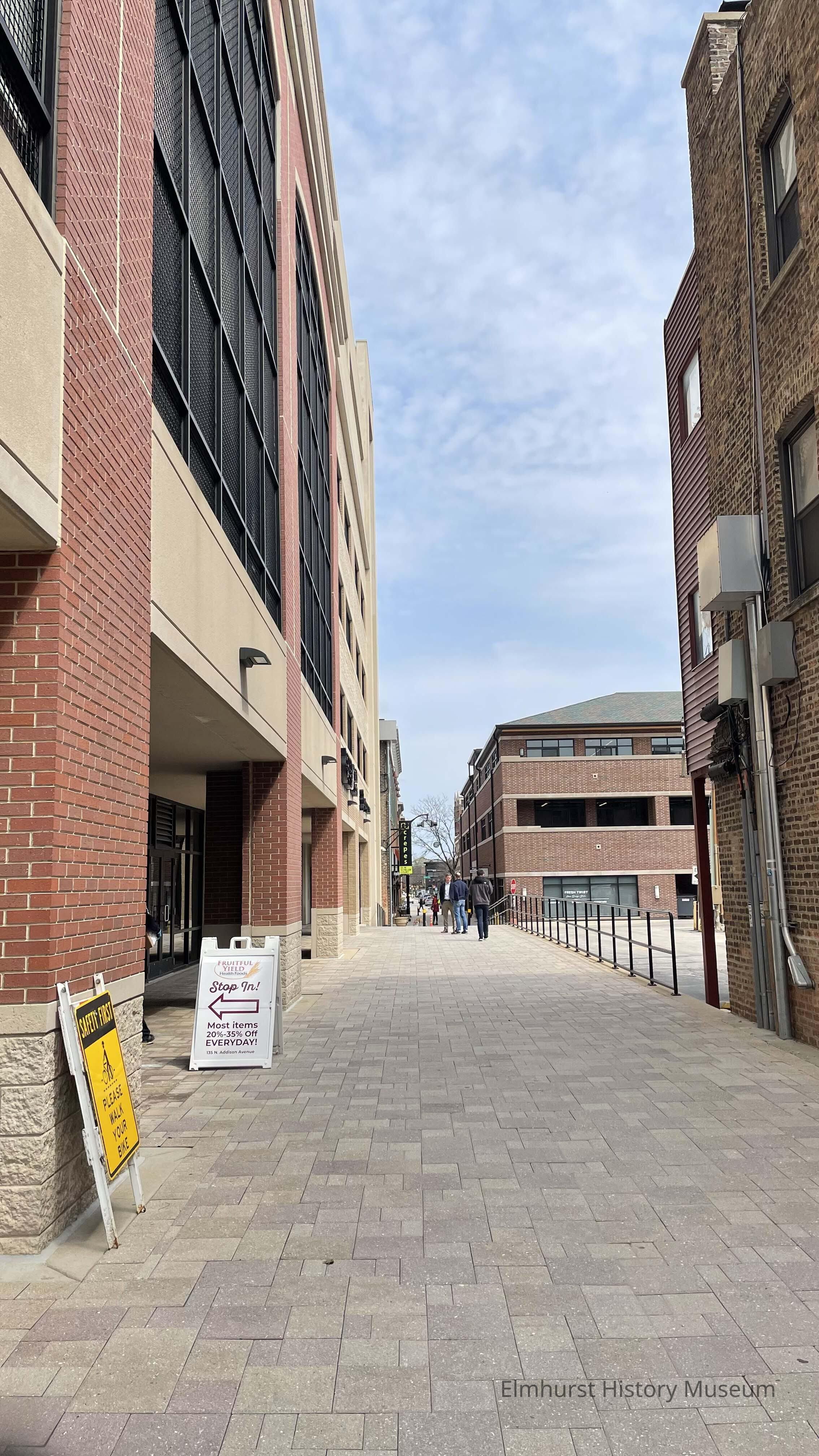 Schiller Court Alleyway, looking east from N. Addison Avenue.Photograph Details