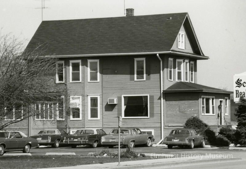 on back: Schiller Real Estate Co 404 N York Elmhurst Photo by Walter Purdy taken in May 1980 The building was torn down in May 1980 to make room for a fire station. The business relocated.