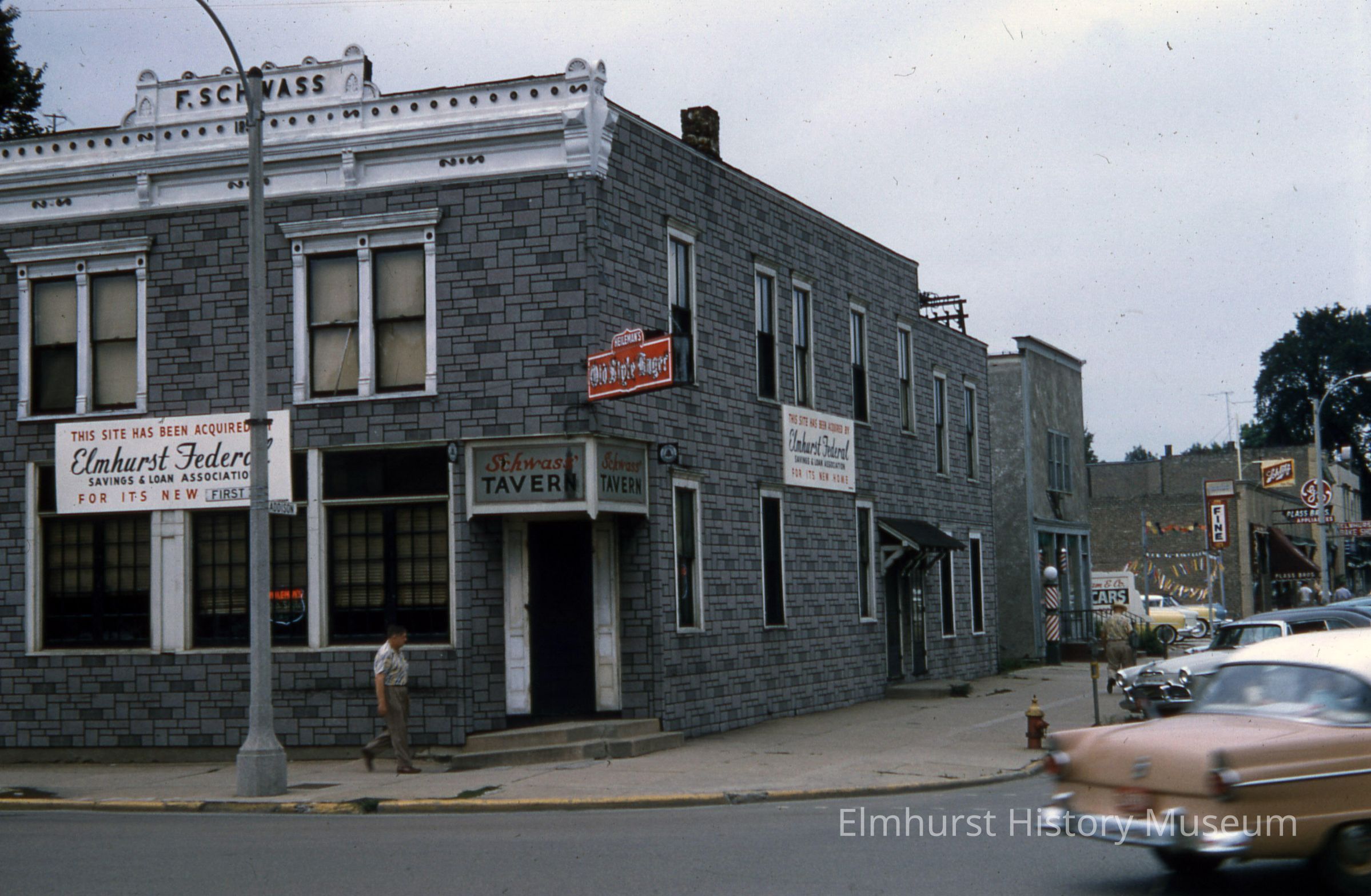 Schwass Tavern at the northwest corner of First Street and Addison Avenue.Photograph Details
