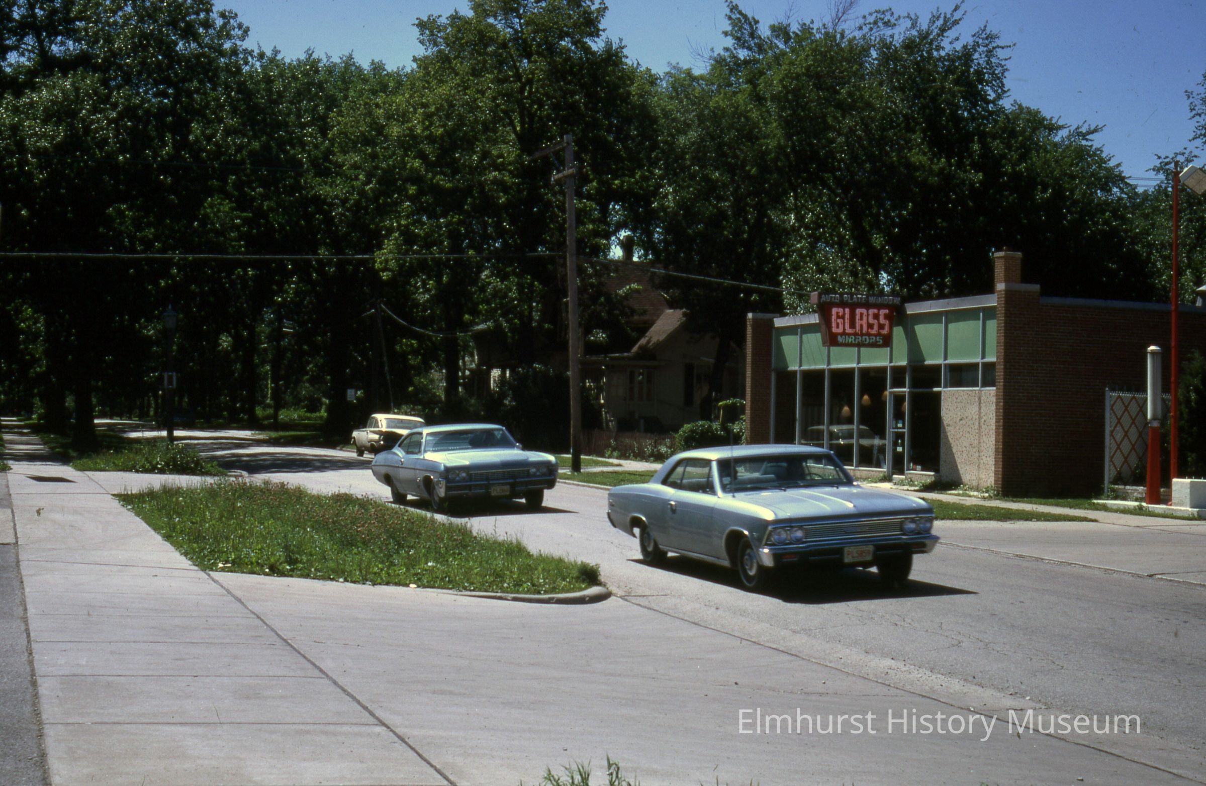 Image of Second Street looking west from Addison Avenue. Elmhurst Glass Co. at 145 Second Street is at right.Photograph Details