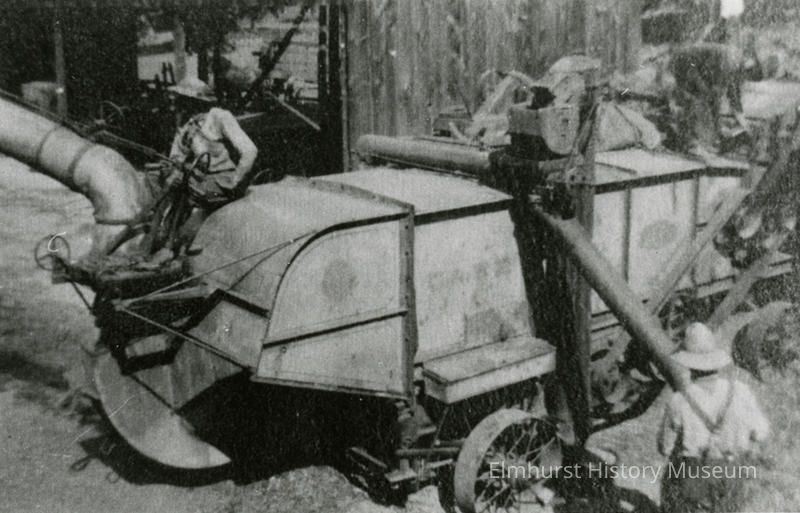 Several men work with a separator machine on the Harger farm.