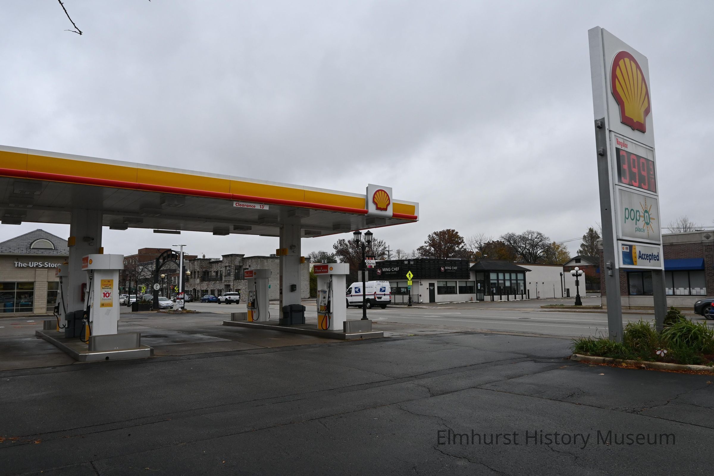 Shell Gas Station at 103 W. Third Street, looking northeast towards N. York Street.Photograph Details