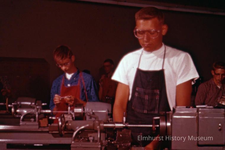 Students in a machine shop class at York Community High School.