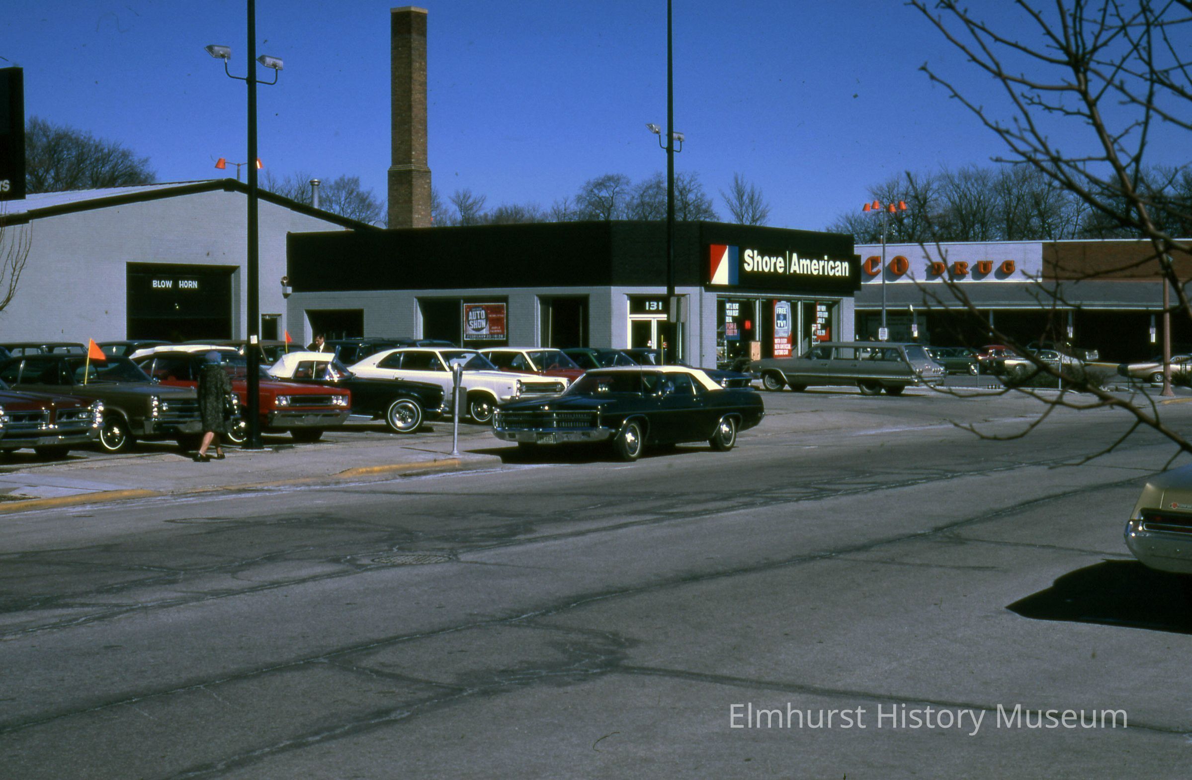 View of Shore AMC car dealership at 131 Schiller Street, looking northeast towards the Jewel-Osco store at 153 Schiller Street.Made/Created