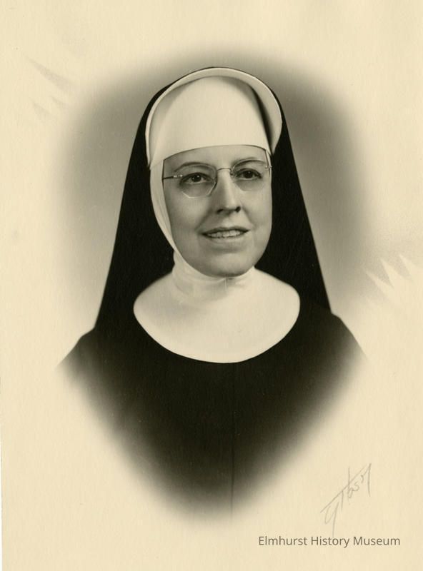 On back of photo at the bottom: Sister Carmel Meyer, Principal at ICHS 1955 - 1961, photo taken c. 1950s.