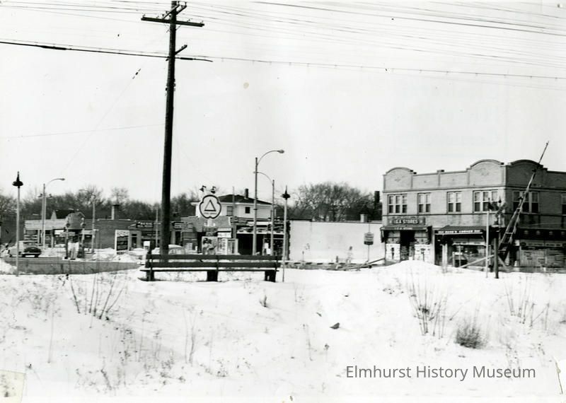 Spring Road business district looking southwest. Businesses include Hank's Corner, IGA Stores, Alan Furnace, and Elmhurst City ServicesPhotograph Details