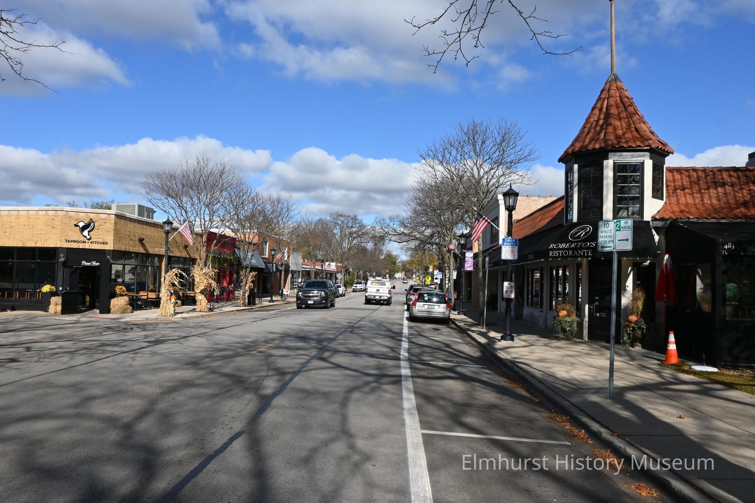 Spring Road Business District, looking north on Spring Road from the Illinois Prairie Path.Photograph Details