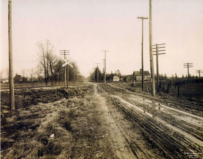 St. Charles Road at the Illinois Central Railroad crossing. The original print was taken by "Geo R Lawrence Co." in Chicago.Photograph Details
