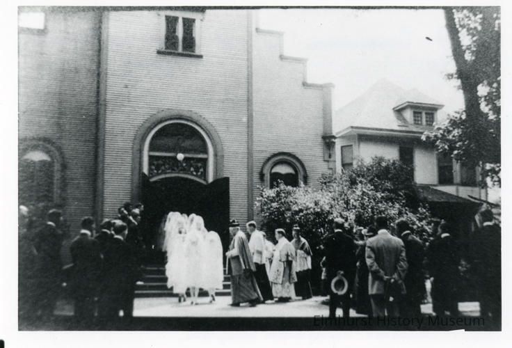 First Communion service at St. Mary's Catholic Church, after rebuilding from an 1898 fire, on the east side of S. York Street.Photograph Details