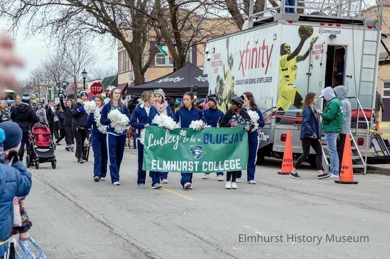 Elmhurst college cheerleaders march in the Elmhurst St. Patrick's Day parade on Spring RoadPhotograph Details