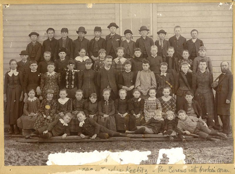 School students with a teacher at center and Rev. August Berens on the right, St. Peter's School on W. Church StreetPhotograph Details