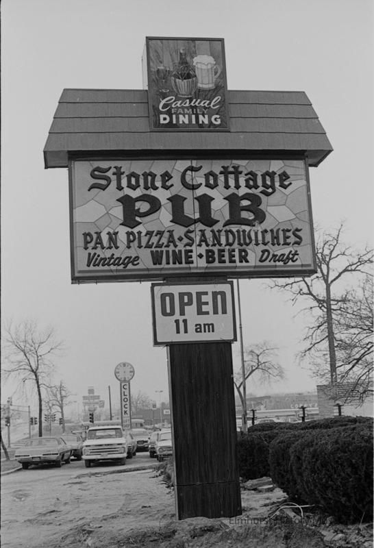 Stone Cottage Pub signage, looking west towards Route 83, at 617 W. North Avenue. The restaurant was at this location 1972 to 1989.Photograph Details