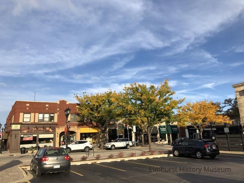 Storefronts on S. York Street, including Pints, Guac and Tacos, and Fulla Bologna deli, looking west from the Fifth Third Bank parking lot to the east of S. York Street.Photograph Details