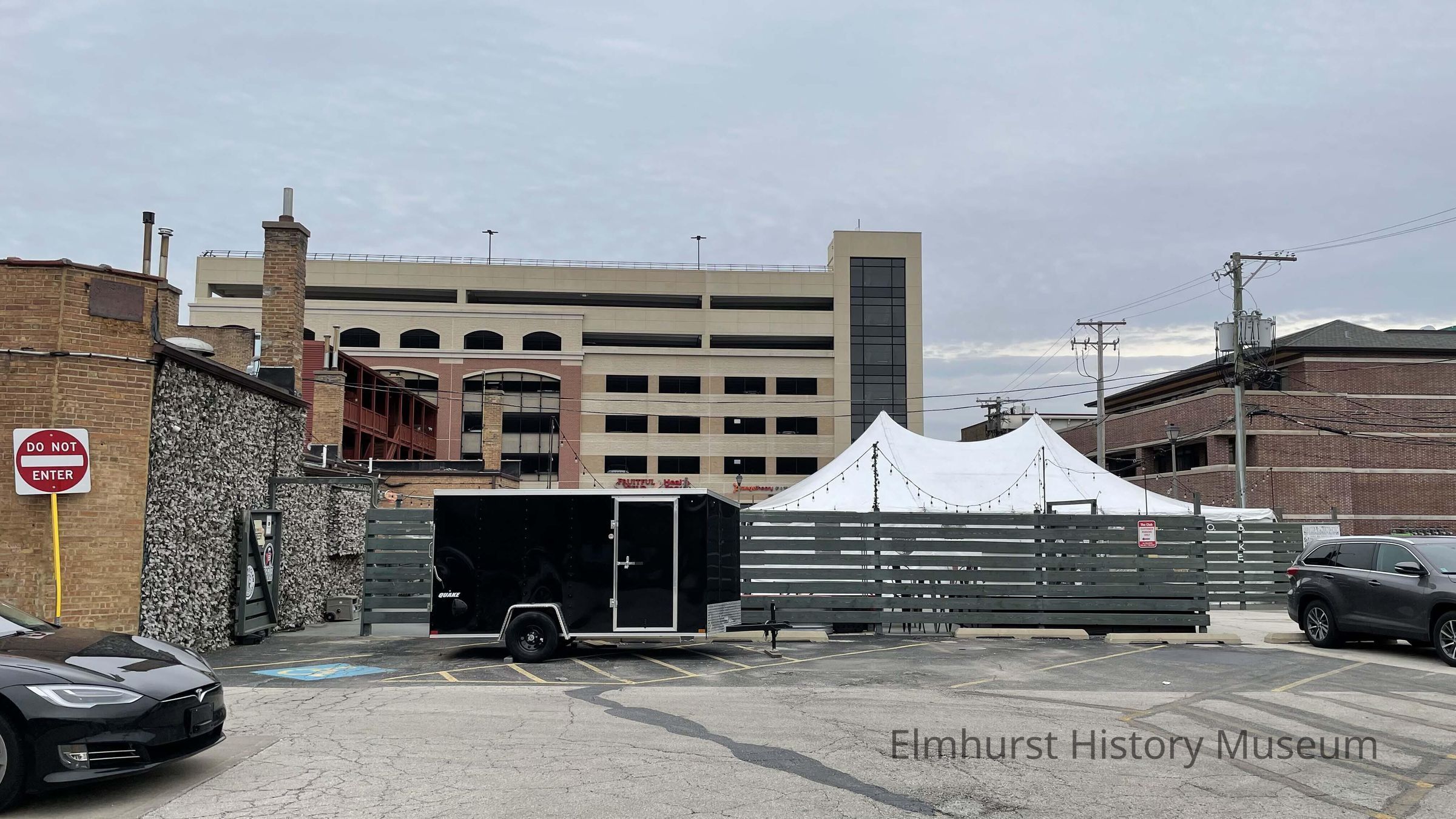 Beer garden outdoor dining area behind The Club at 113 N. Addison Avenue, looking north.Photograph Details