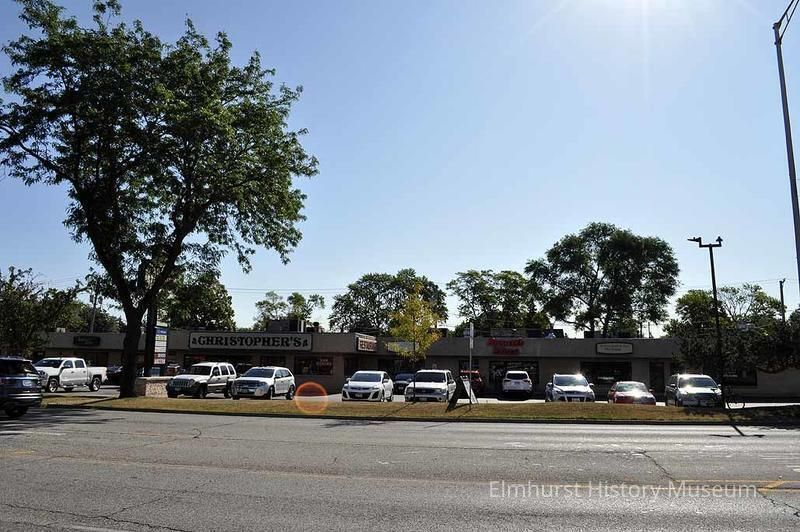 The Little Shopper commercial strip mall on N. York Street. Pictured businesses include Christopher's Restaurant, Rosati's Pizza, and Nathan's Noodles.Photograph Details