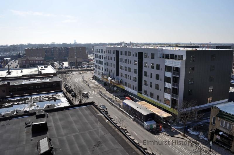 View of the Marke apartment building at 100 N Addison from Addison Parking Deck, looking south towards First Street.Photograph Details