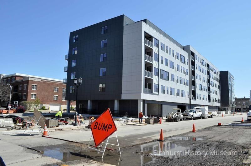 View of newly-opened The Marke Luxury Apartments at 100 N. Addison from First Street looking east.Photograph Details