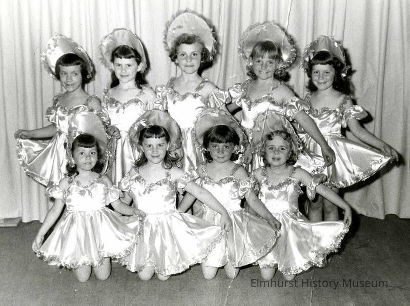 Thelma's Dance Studio students before a dance recital. Nancy Wilson is top row at left.Photograph Details