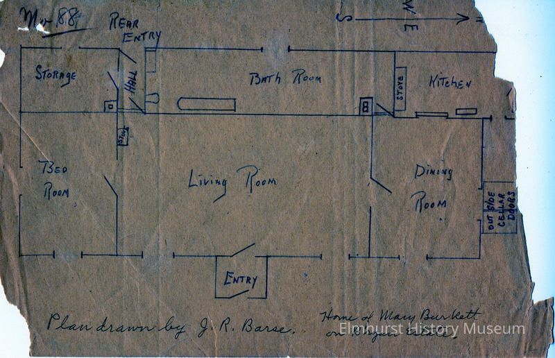 on front: Plan drawn by J.R. Barse. Home of Mary Burkett on Bryan Estate.