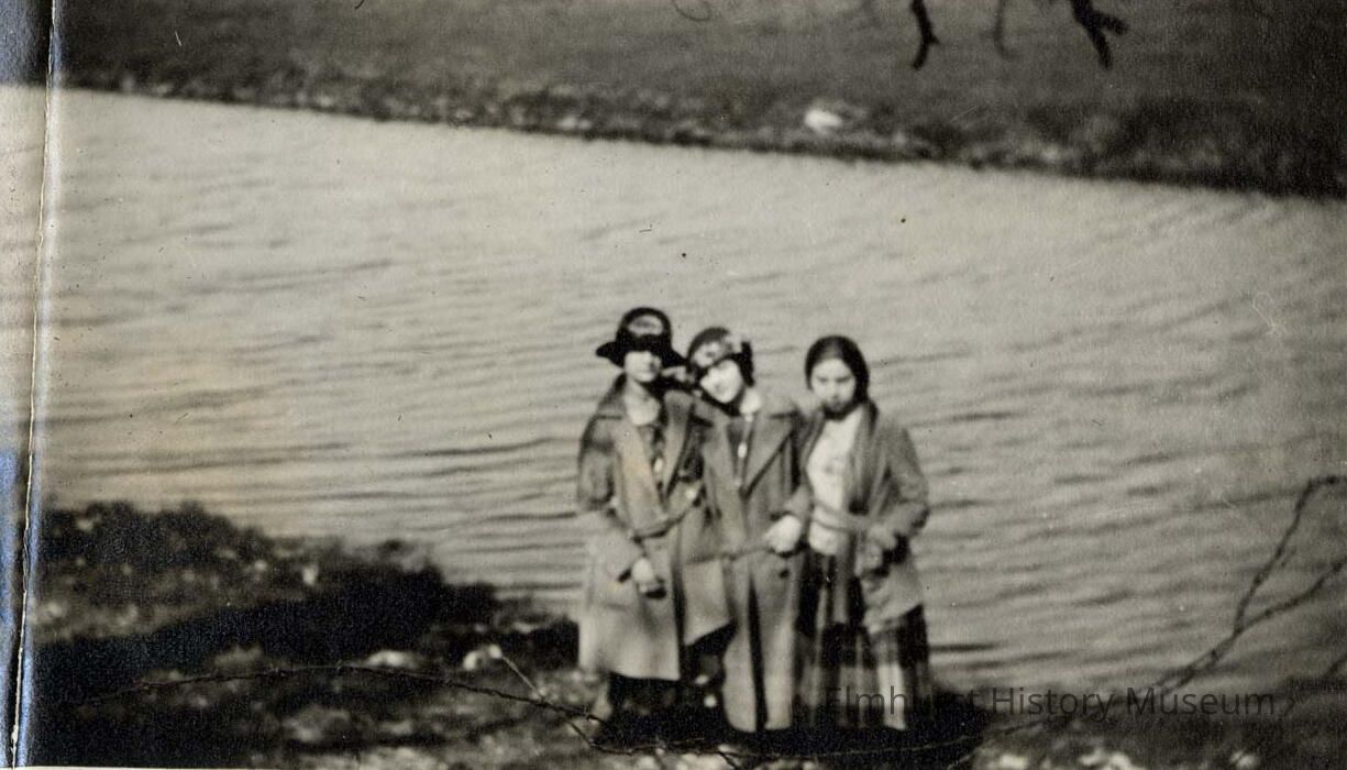 Three Women pose for a photo near Salt Creek. Woman at right is Laura Schumacher Raab.Photograph Details