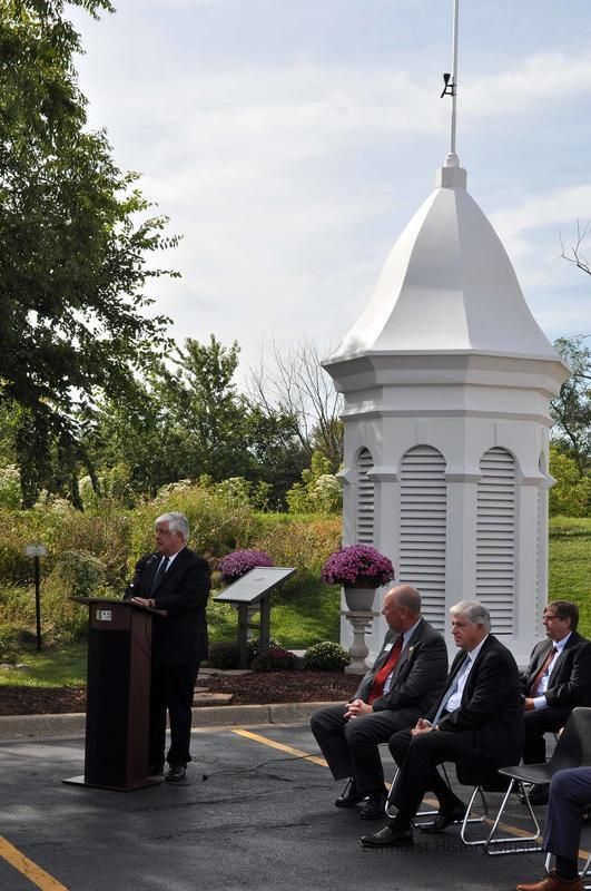 Former Elmhurst mayor Tom Marcucci speaks at the restored Elmhurst Memorial Hospital Cupola at Elmhurst Community Bank at 330 W. Butterfield Road.Photograph Details