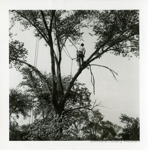 Tree trimmer at work in Elmhurst