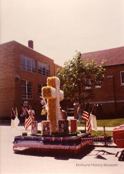 On back: Immanuel Lutheran School's float for U.S. Bicentennial celebration, 1976