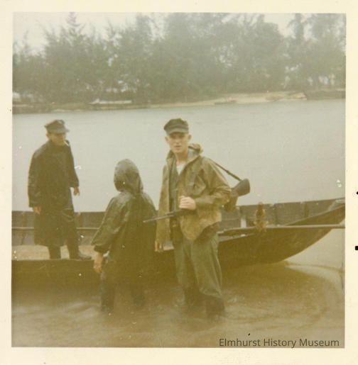 Marine and Elmhurst resident Richard "Dick" Weber, on the right, serving in the Vietnam War during the monsoon season. Weber was in "I" Co., 3rd Battalion, 5th Marines, 1st Marine Division. He served in Vietnam April 1966-April 1967.Photograph Details