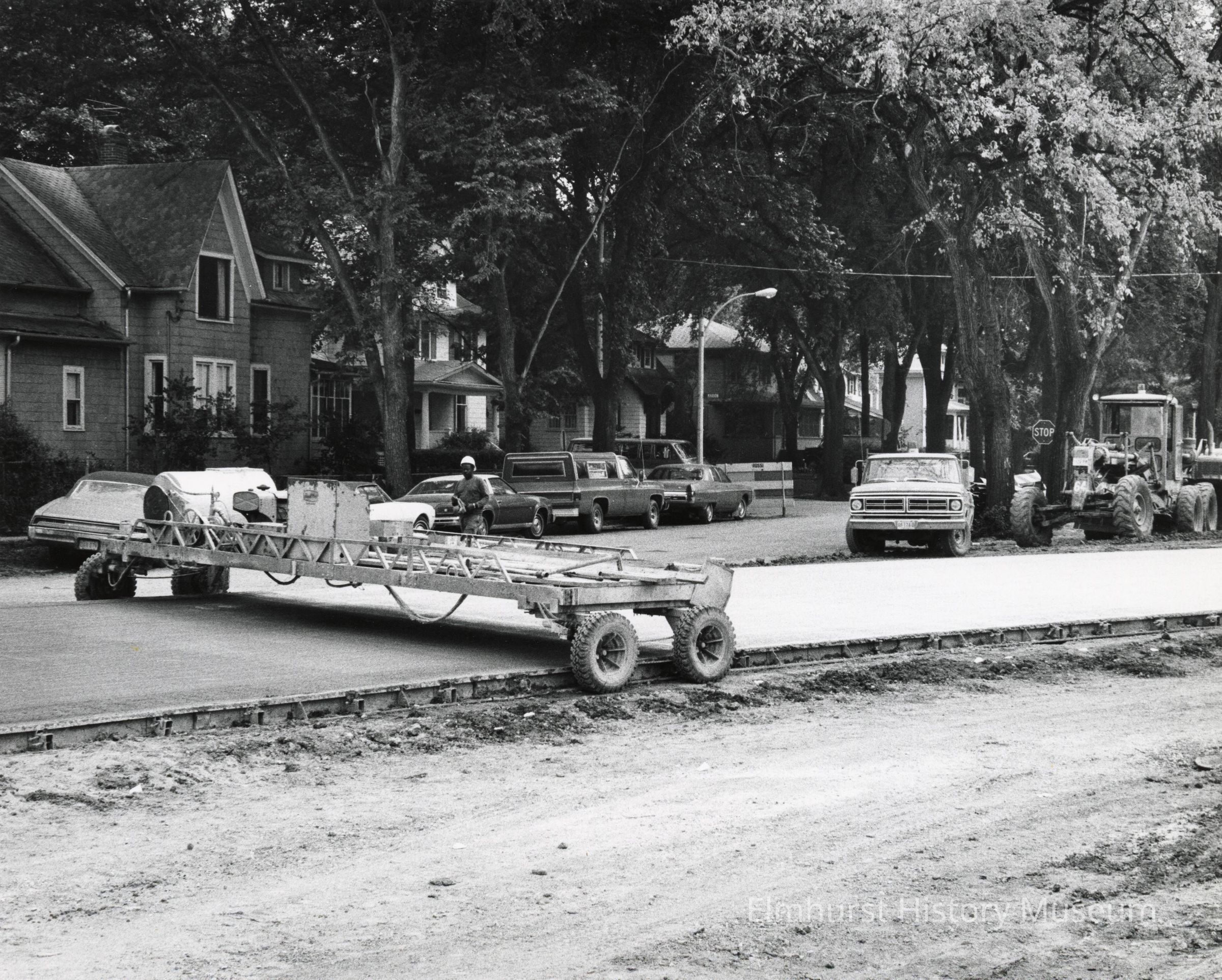 Roadway construction at the intersection of Marion Street and S. Kenilworth Avenue durng the underpass installation, looking south.Photograph Details