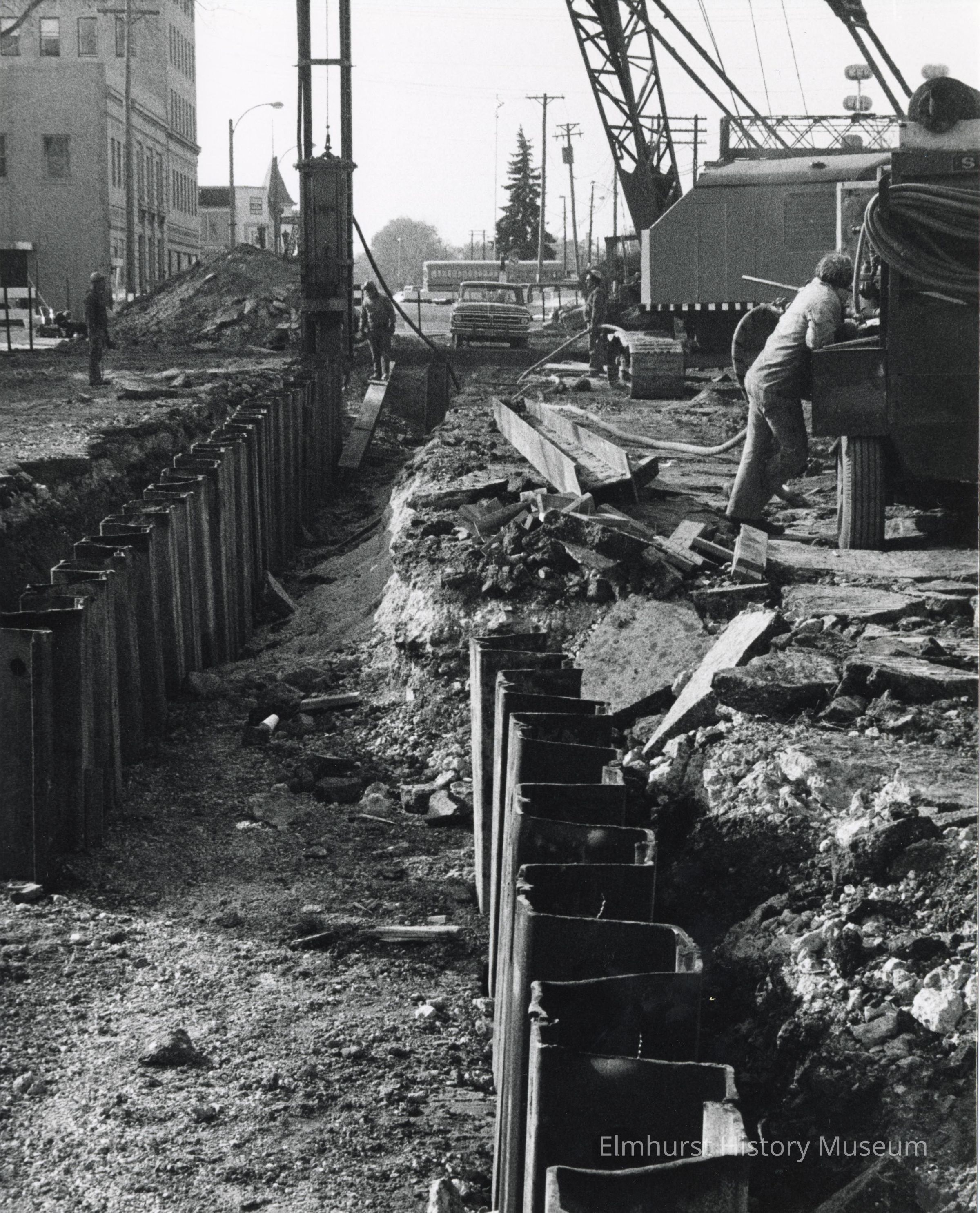"Elmhurst Underpass Program: Pile driver at work looking W. east of York St."