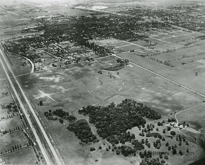 Looking northwest from near the Cook County - DuPage County line and the Chicago Great Western RR. The empty land with curving roads was developed into Crescent Park Subdivision. The railroad lines on the left are the Chicago Aurora & Elgin and the Chicago Great Western.Photograph Details