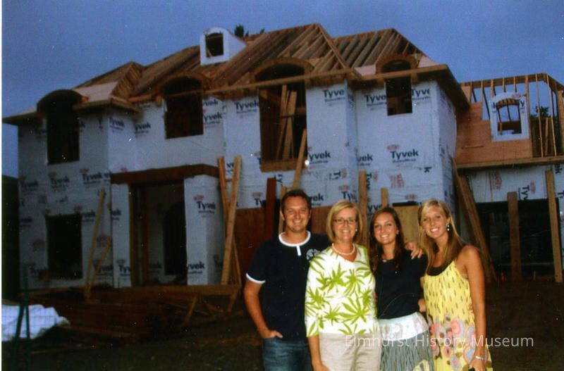 House at 311 S. Kenilworth under construction with four members of Van Solkema family standing in front, identified as Alden, Renita (Mrs.), Audrey and Andrea.Photograph Details
