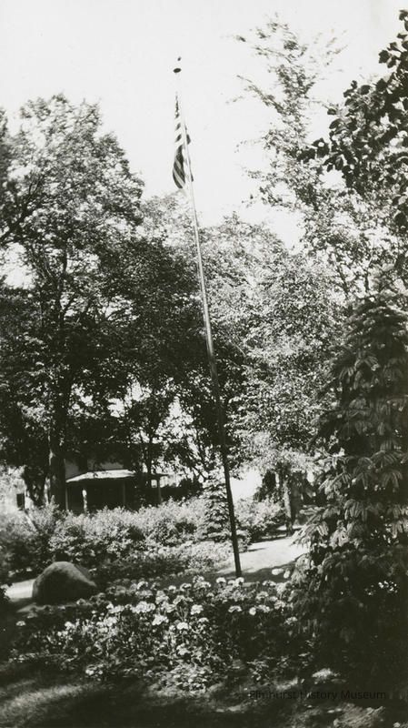 Written in blue on back: 7/7/40 / Wilder Park / Elmhurst, Ill The plaque reads: IN SACRED MEMORY/MAY 30, 1927/ THESE THREE TREES WERE PLANTED AND/DEDICATED BY THE MEMBERS OF T.H.B. POST/NO. 187 OF THE AMERICAN LEGION AND THE/CITIZENS OF ELMHURST IN MEMORY OF/ERNEST H. TIMROTT, RICHARD HINTZ/KINGSLEY(sic) C. BUCK/WHO WERE KILLED IN ACTION DURING THE/ GREAT WAR OF 1914 - 1918. ALSO A TRIBUTE/TO THOSE OF ELMHURST WHO SERVED IN/THE STRUGGLE FOR DEMONCRACY./ THEIRS NOT TO REASON WHY/THEIRS BUT TO DO OR DIE/TENNYSON