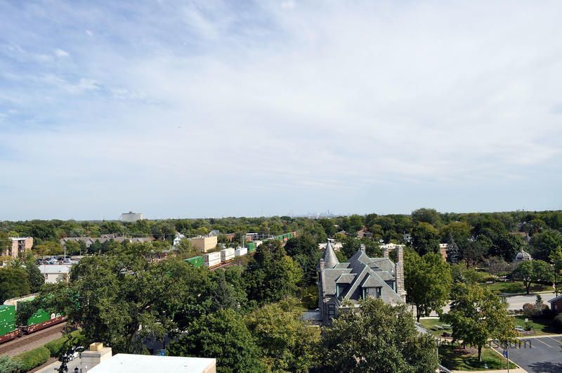 View from the 105 S. York rooftop, looking east past the Glos Mansion.Photograph Details