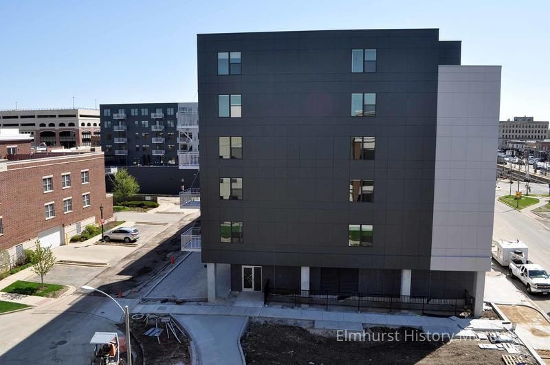 View from parking deck at 175 W. First Street looking east towards the newly-constructed Marke luxury apartment complex at 100 N. Addison.Made/Created