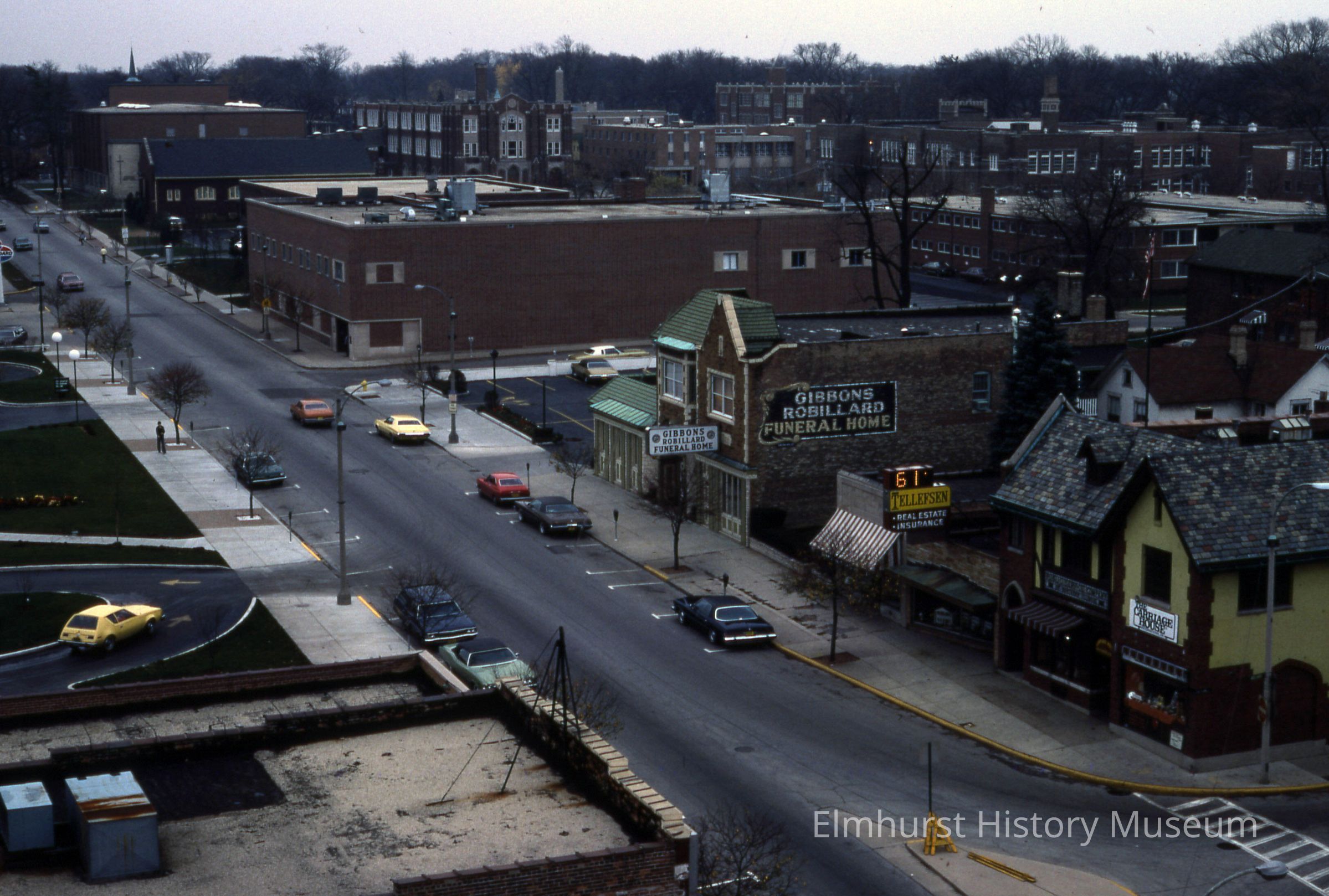 View of S. York St. from the roof of the Elmhurst National Bank Building at 105 S. York Street.Photograph Details