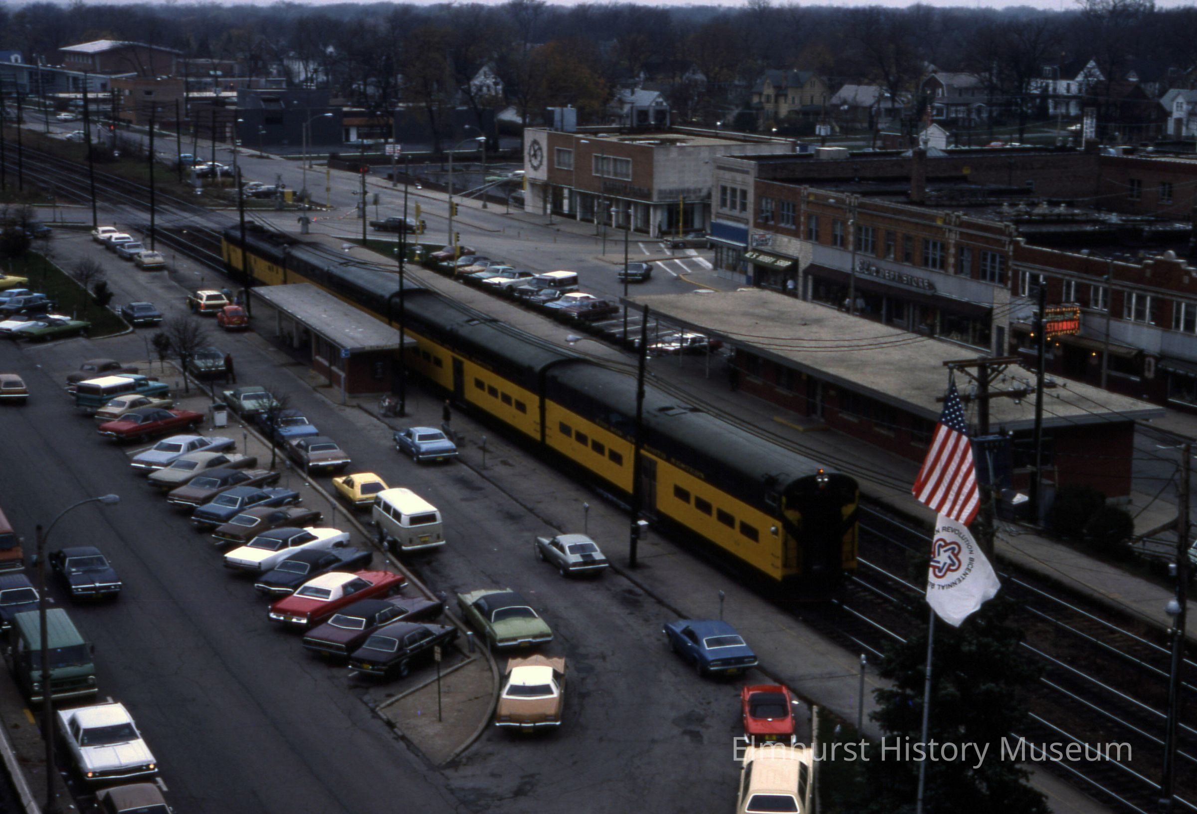 View of the CNWRR station from the roof of the Elmhurst National Bank Building at 105 S. York Street.Photograph Details
