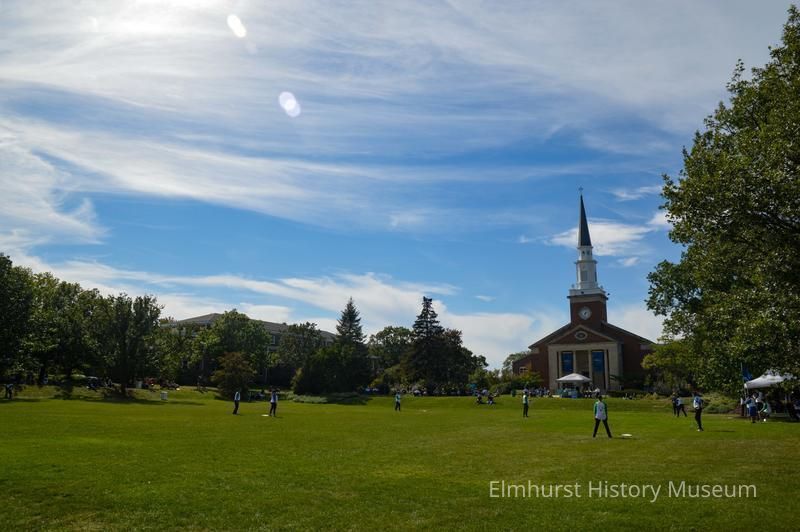 Vintage Baseball Game program, a partnership between the Elmhurst History Museum and Elmhurst University, on the Elmhurst University Mall.Photograph Details