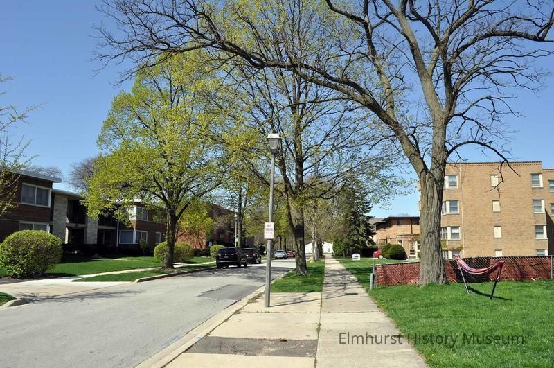 Virginia Street looking west from S. York Street, showing apartment buildings.Photograph Details