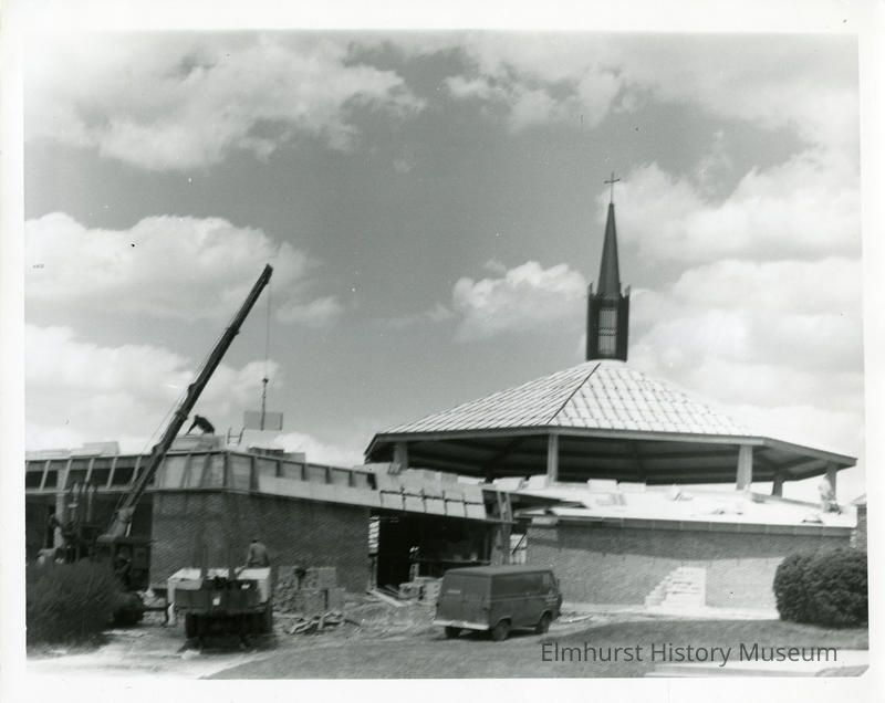 on back: Visitation (Roman Catholic) Church under constr., York St. at Madison St. (Looking NE) Taken May 18, 1966 by R.L. Mahon with1A Kodak, with K2 filter on lens EK Verichrome film