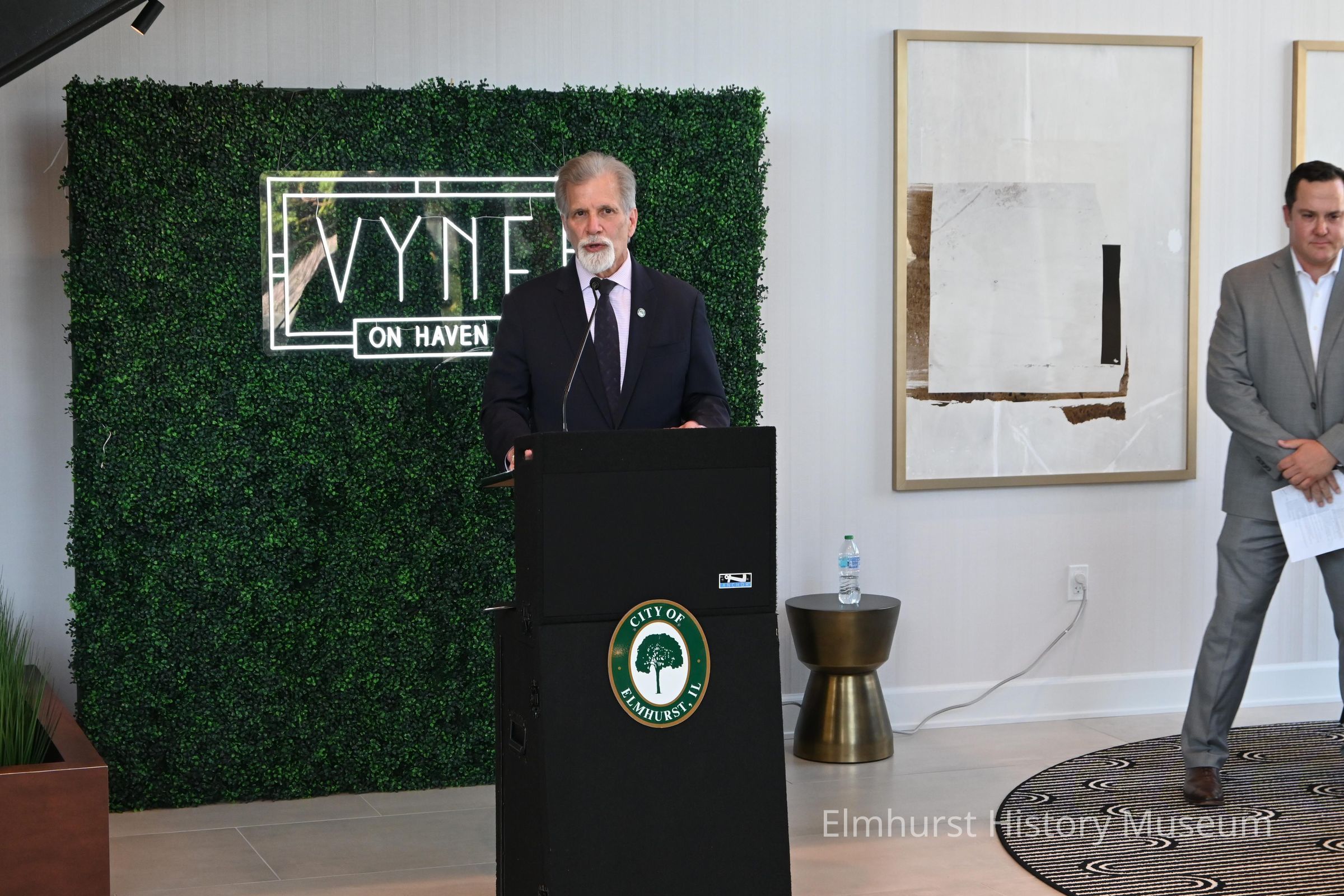 Mayor Scott Levin speaks at the ribbon cutting ceremony for the Vyne on Haven apartment block at 100 Haven Road.Photograph Details