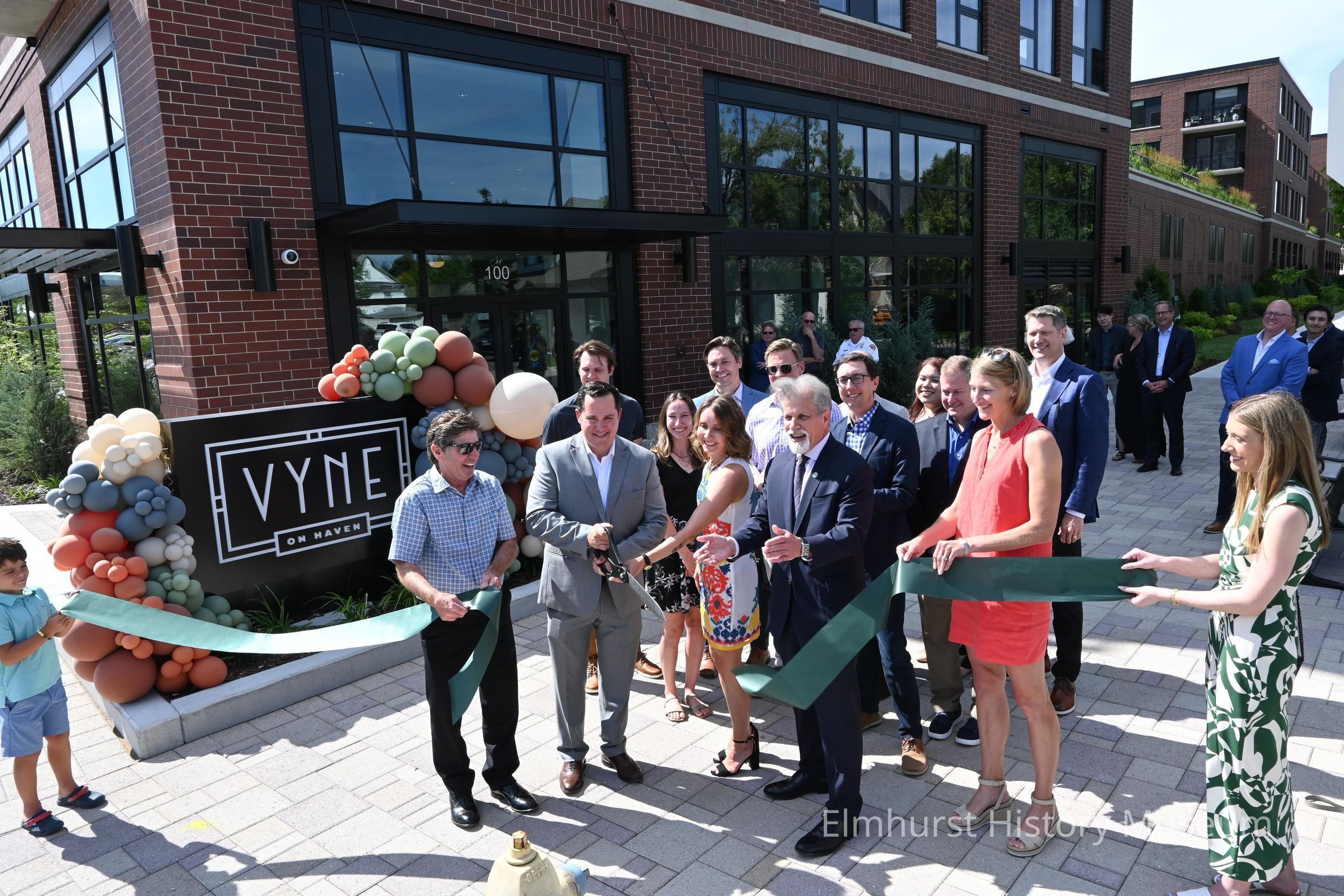 A crowd gathers at the ribbon cutting ceremony for the Vyne on Haven apartment block at 100 Haven Road.Photograph Details