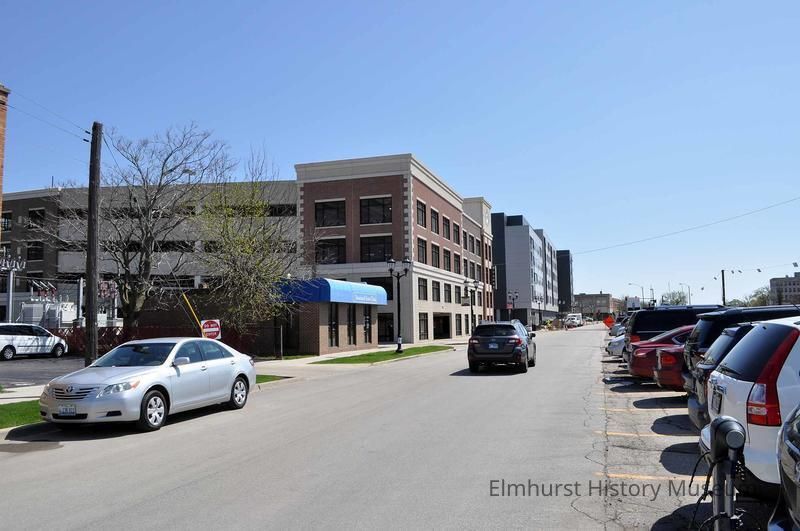 W. First Street looking east from Maple Avenue. Visible structures include Bushnell Foot Clinic at 183 W. First, the First Street Parking Deck, and the Marke luxury apartments.Photograph Details