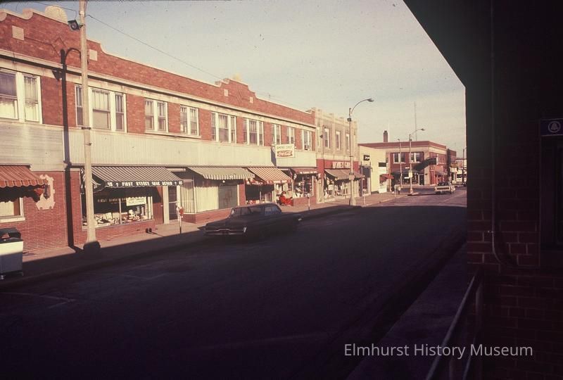 W. First Street looking east towards N. York Street from the Chicago and North Western station.Photograph Details