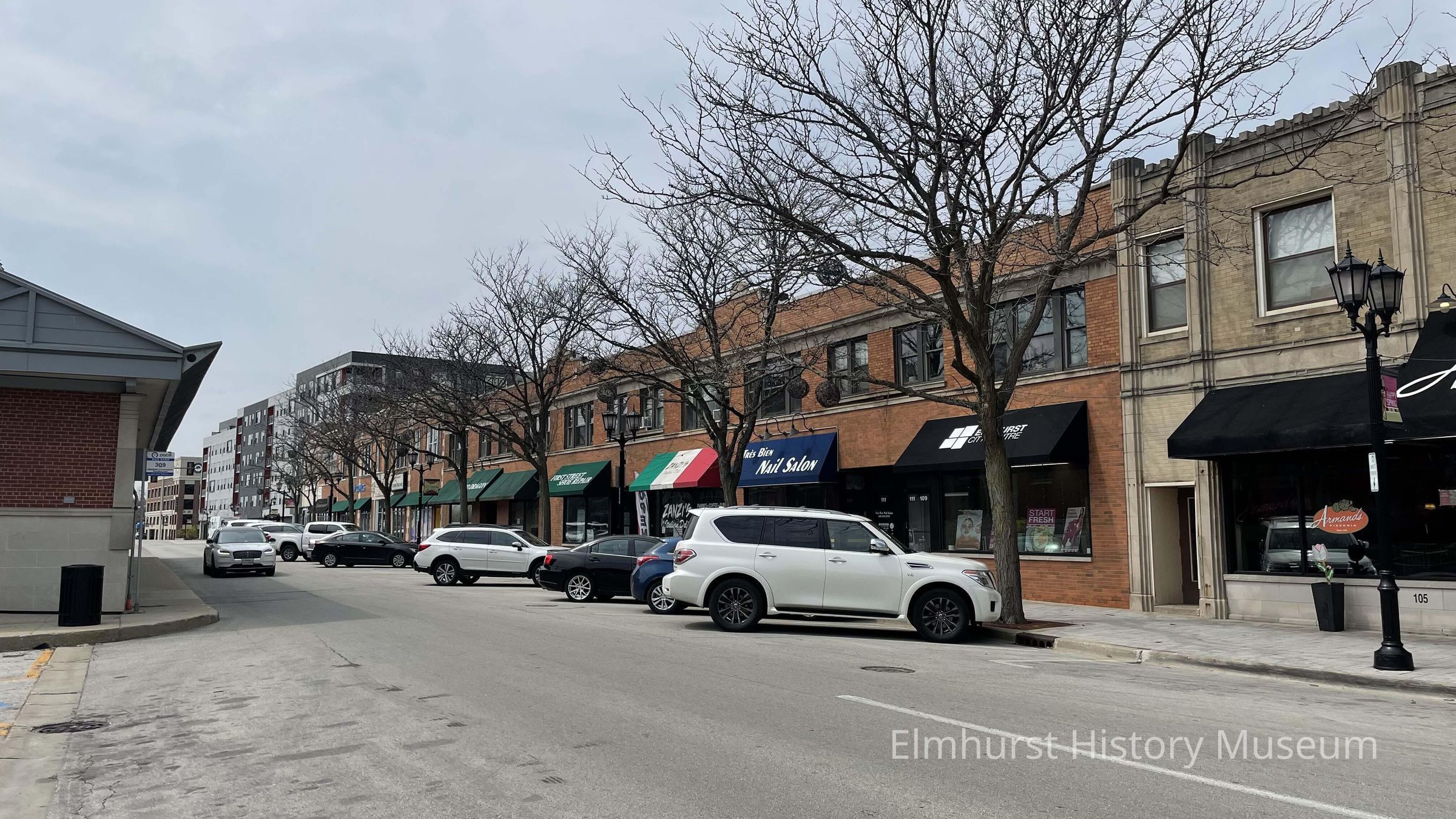 W. First Street looking west from N. York Street towards Addison Avenue.Photograph Details