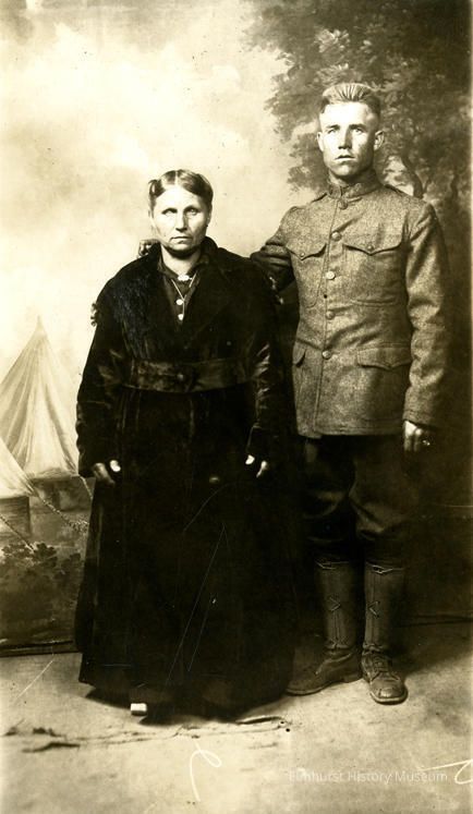 Marie Satzke Ewald standing next to her son, Walter Ewald, in an army uniform (WWI)Photograph Details