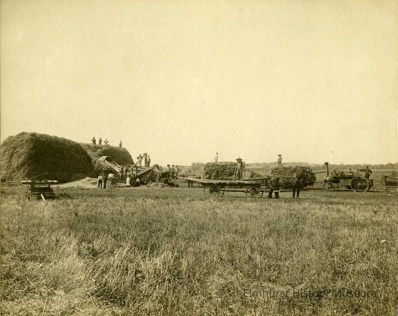 Threshing on the Warkentien farm (located in the area of York Road and Roosevelt Road).Photograph Details