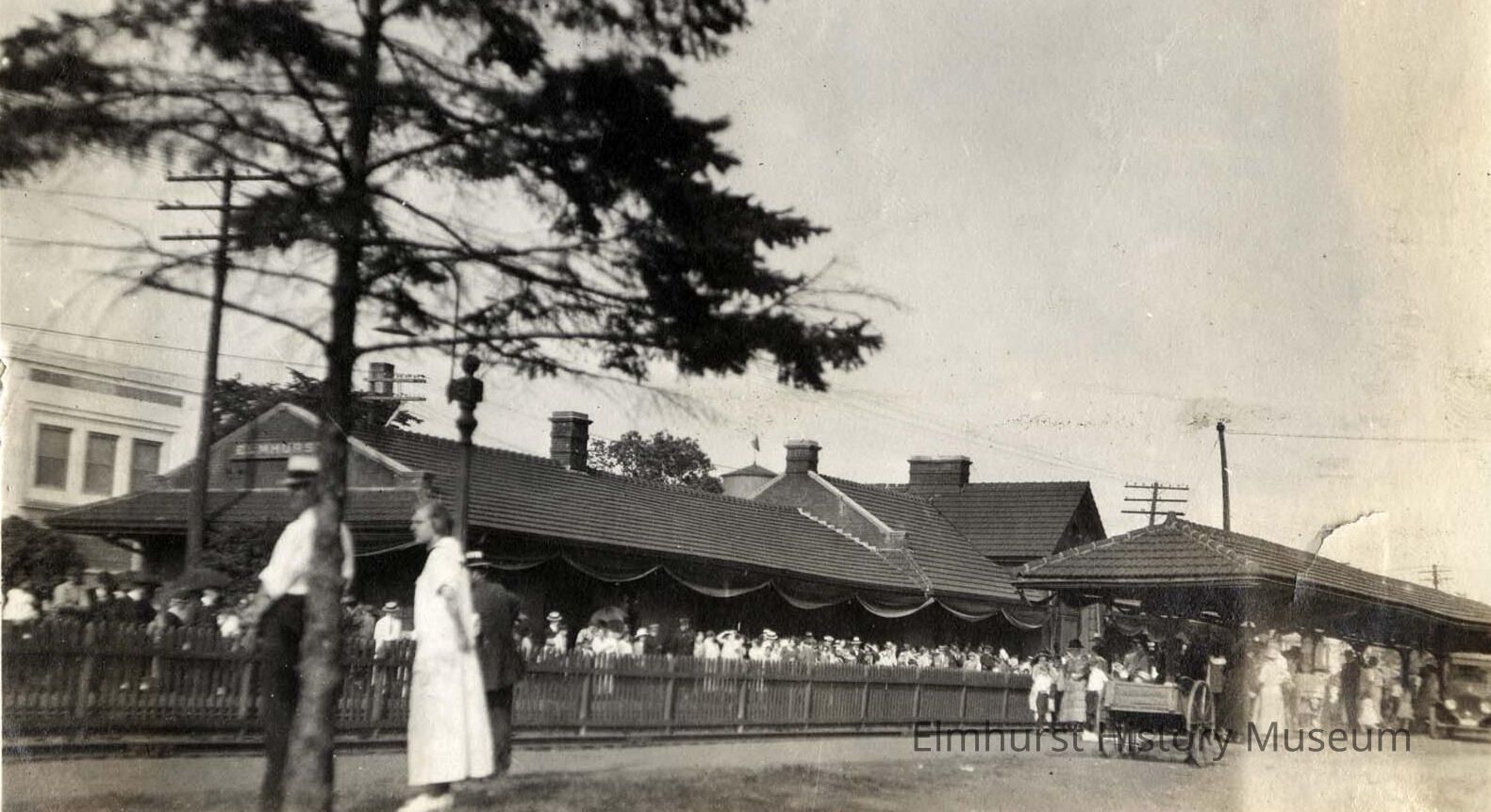 A crowd gathers around the Chicago & North Western railroad depot in downtown Elmhurst to view the President Warren Harding funeral train.Photograph Details