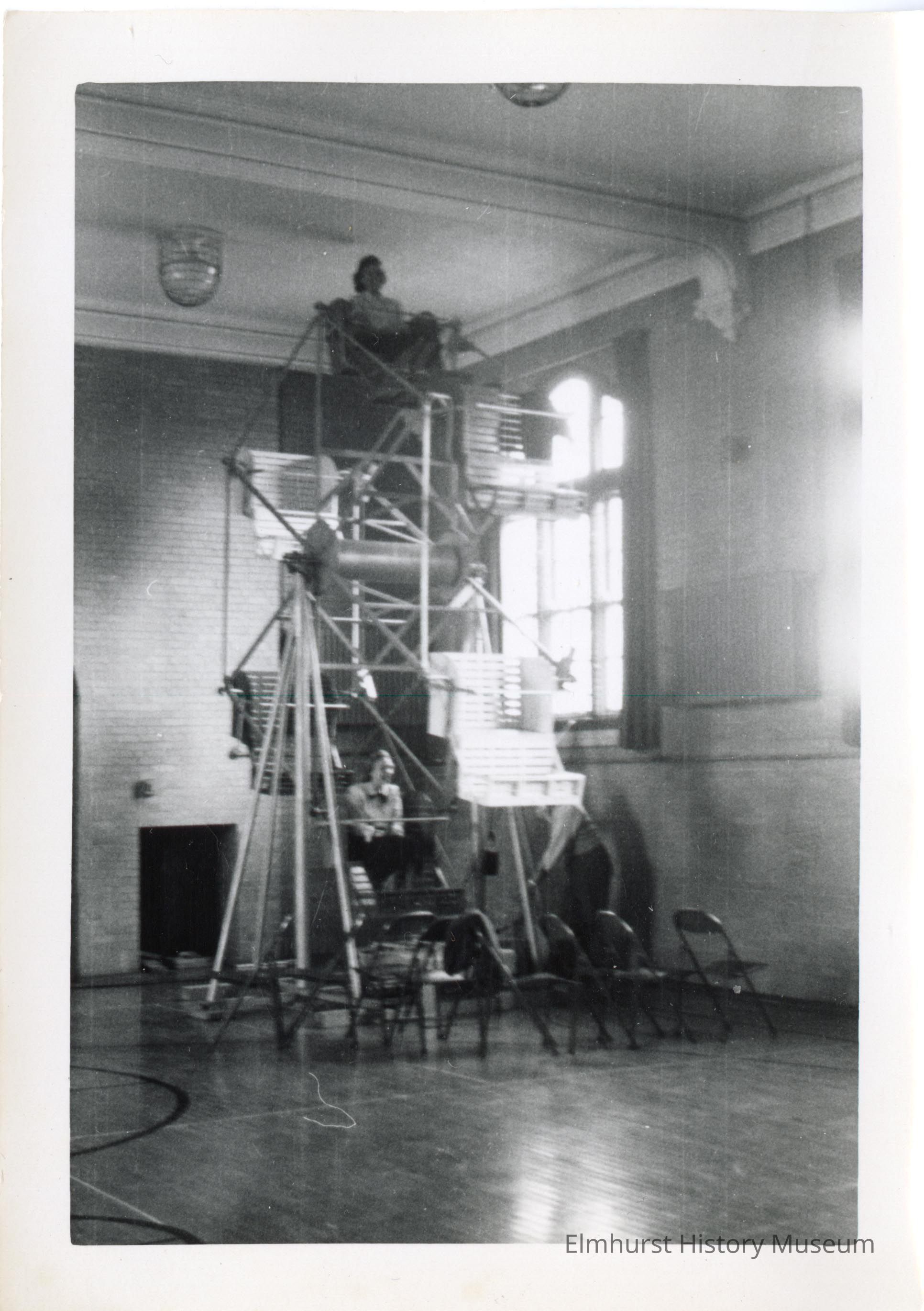 Ferris wheel in the school gym, fabricated by the Washington School PTA, for the annual open house program.Photograph Details